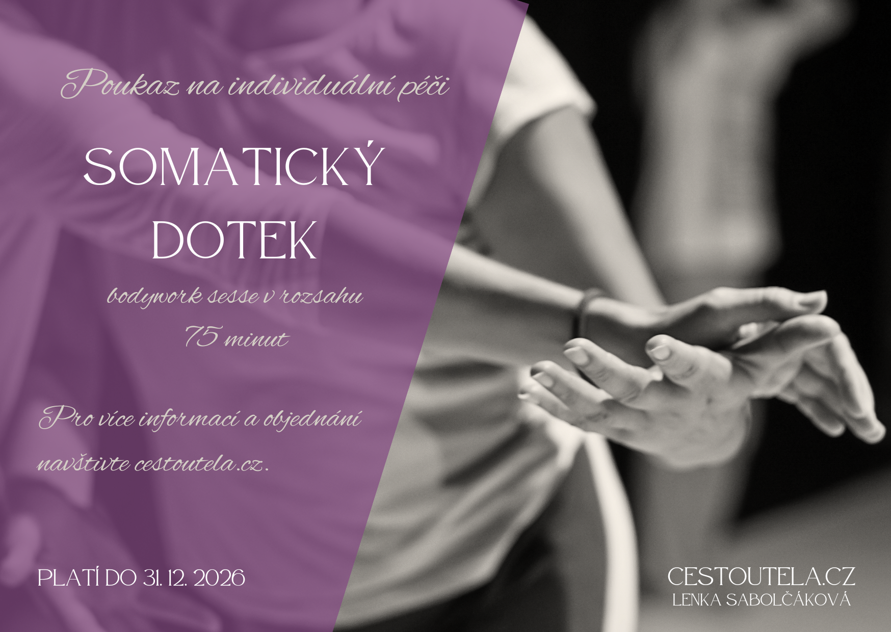 Dárkový poukaz na somatickou péči je možné využít na kteroukoliv ze služeb na tomto webu. Design poukazu mohu také upravit konkrétně pro: Individuální somatické provázení, Somatický dotek neboli Bodywork, nebo na provázení v krajině.